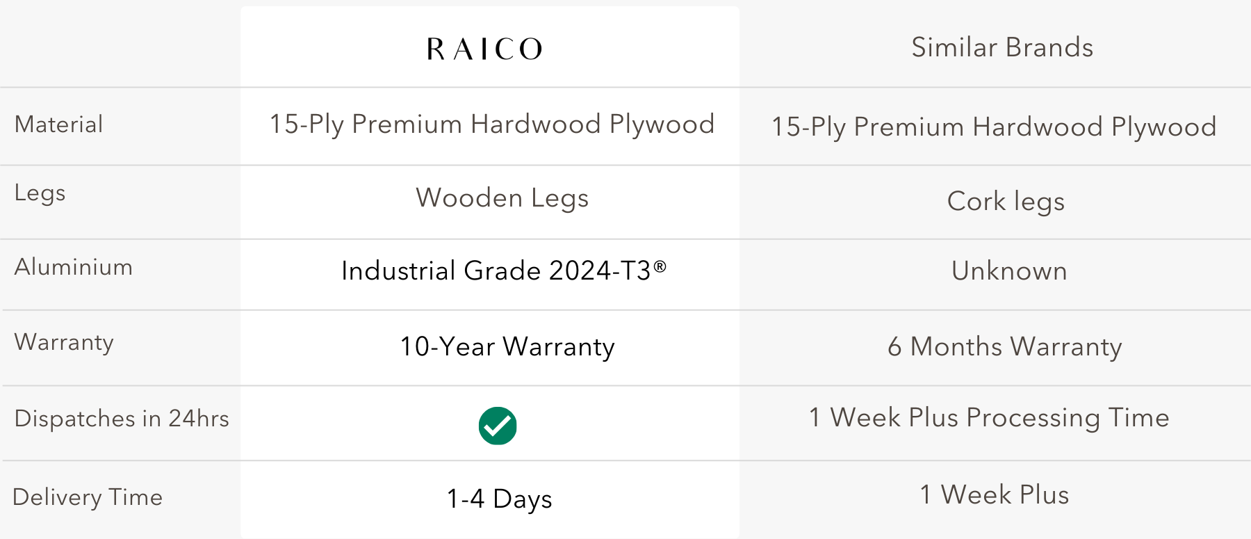 ✓ Industry Leading 5-Year Raico Warranty