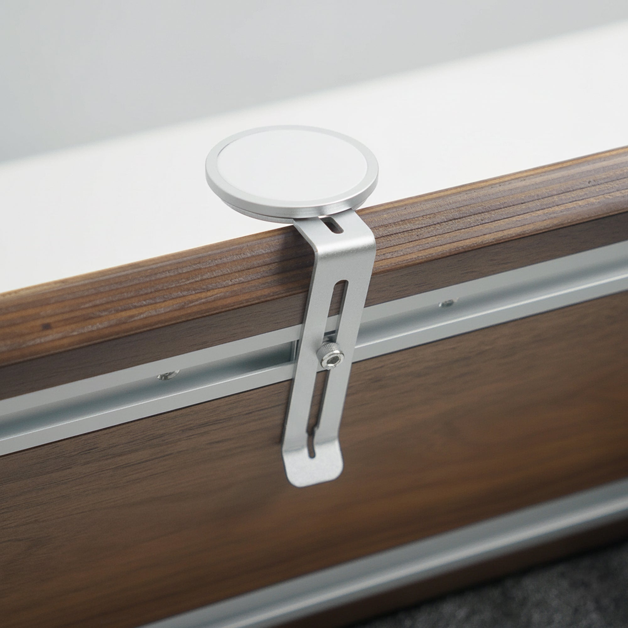 Raico rail system allows the MagSafe Holder to mount it exactly where you need it so that the device is always perfectly aligned with you.