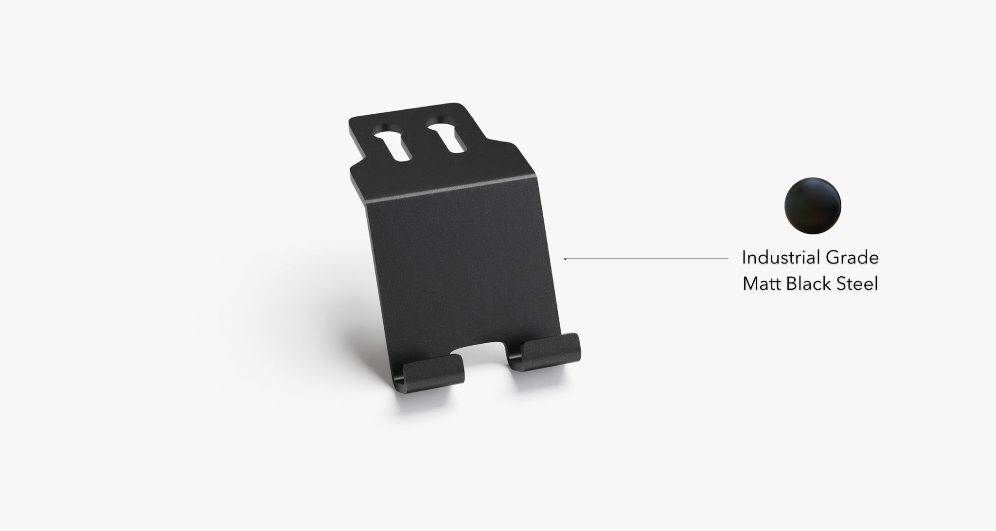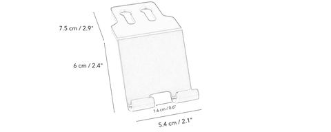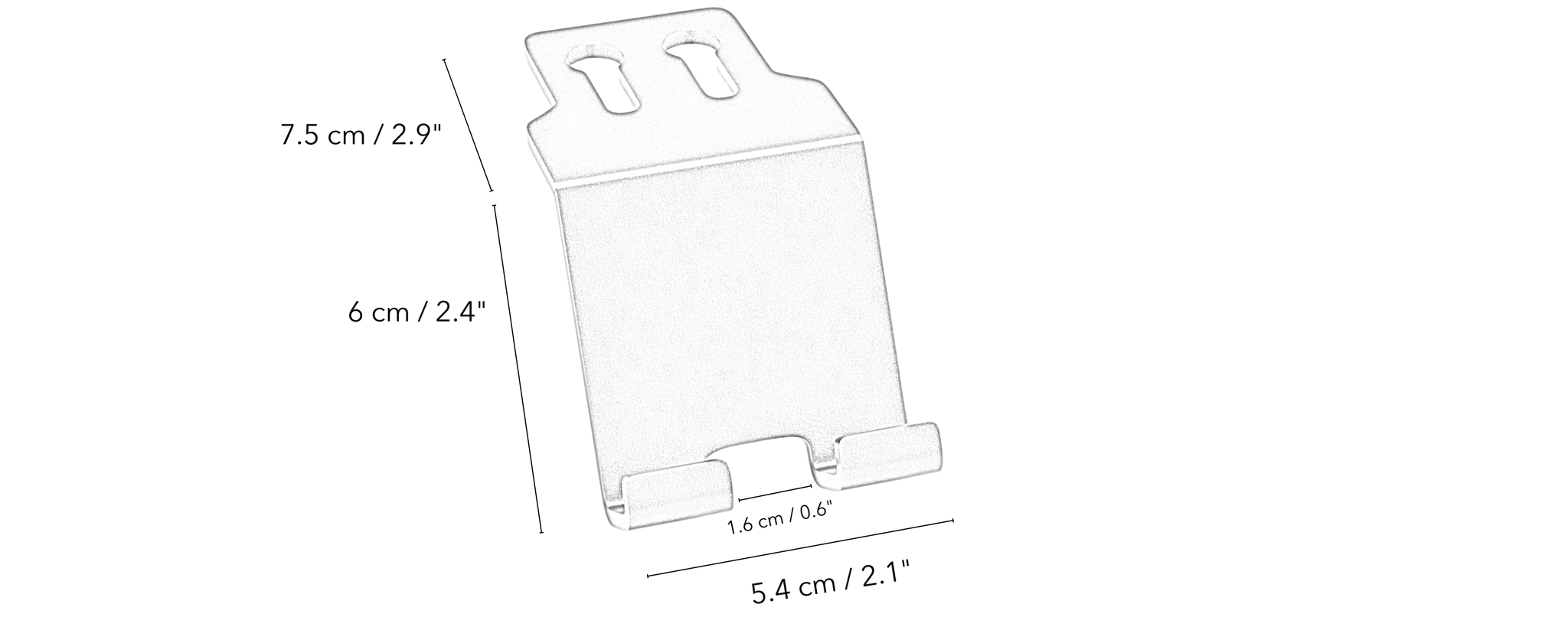 This phone/tablet holder is compatible with devices up to 1.4cm / 0.55" thick. With our innovative rail mount system, you have unlimited option to place your tablet on our v2.0 desk shelf track — without having to remove the tablet holder completely.